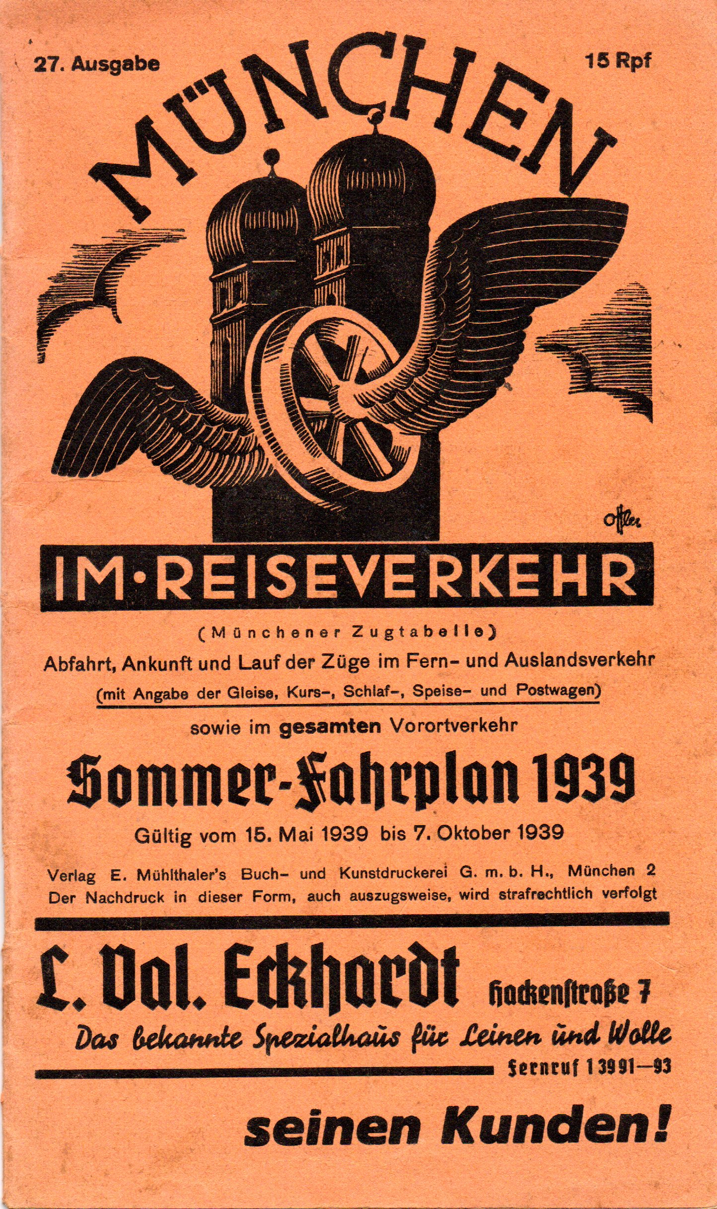 München im Reiseverkehr (Münchner Zugtabelle) - Sommer-Fahrplan 1939